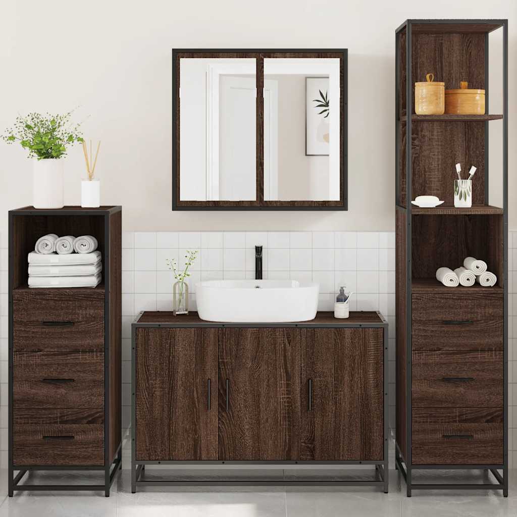 4 Piece Bathroom Furniture Set Brown Oak Engineered Wood