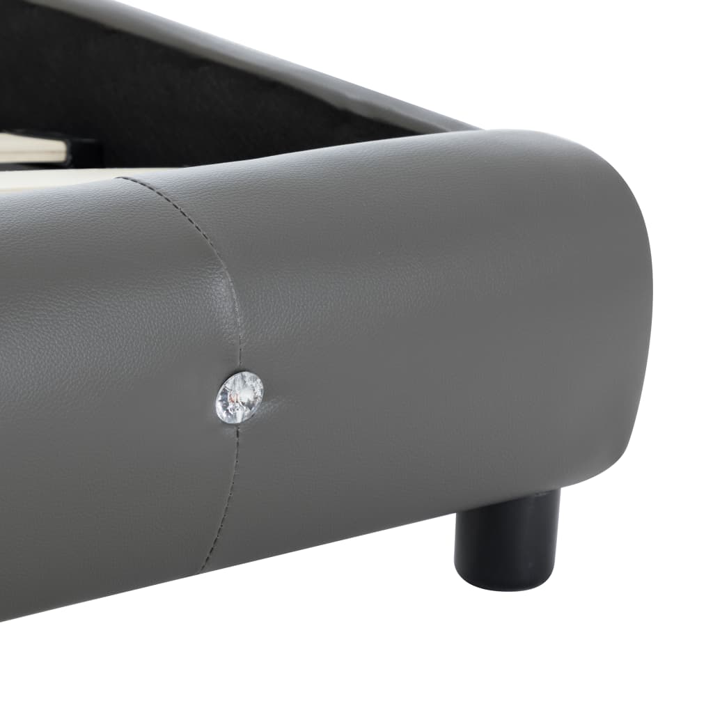 This classic bed frame will become the focal point of your bedroom. Distinguished by an understated yet elegant design, this bed frame adds a touch of elegant charm to your bedroom decor. Made of iron and wood, this bed frame is exceedingly sturdy and durable. The powder-coated steel legs add extra durability to the bed. Additionally, upholstered in durable faux leather, the bed exudes an inviting look. This bed frame is suitable for a mattress of 180 x 200 cm. Please note that delivery includes a bed frame only; a mattress is not included. The bed is easy to assemble.