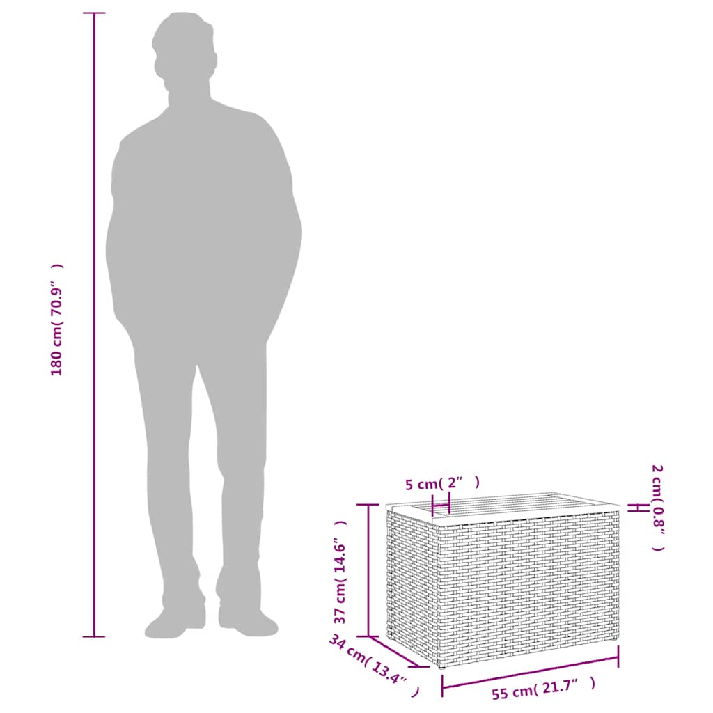 Gather around this versatile garden side table to enjoy a coffee or have a chat with your family and friends in the garden, backyard, or on the patio! Durable material: PE rattan, also known as poly rattan, is a strong, low-maintenance synthetic material that looks like natural rattan. It's lightweight, easy to clean, and commonly used for outdoor furniture due to its durability and weather-resistant properties.Solid wood tabletop: This garden table has a wooden top that is sturdy, durable, and easy to clean with a damp cloth.Robust and stable frame: The powder-coated steel frame ensures that the garden furniture is strong and stable for daily outdoor use. Good to know:To make sure your outdoor furniture stays beautiful, we recommend protecting it with a waterproof cover.