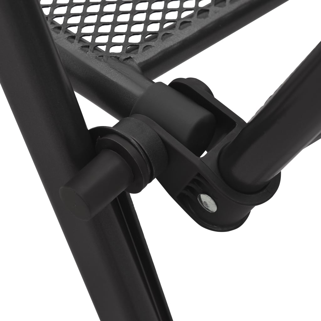 This garden chair set featuring a stylish look is a striking addition to your current outdoor and indoor living space. Powder-coated steel: This garden bar set is made of powder-coated steel, which is an exceptionally hard and strong material. It offers sturdiness and stability. The powder coating on the surface of steel creates a protective layer against rust, corrosion, and wear.Adjustable backrest: The backrests of garden chairs are adjustable in 6 positions so that you can always find the most comfortable position.Foldable function: The garden seating is foldable, so you can fold it up to save space when not in use.Mesh tabletop: The mesh tabletop features beautiful patterns and is suitable for placing drinks, food and other essentials.Wide applications: This multifunctional outdoor chair set features a perfect shape to fit in any environment in your house. It can be used in your kitchen, dining room, living room, patio etc.