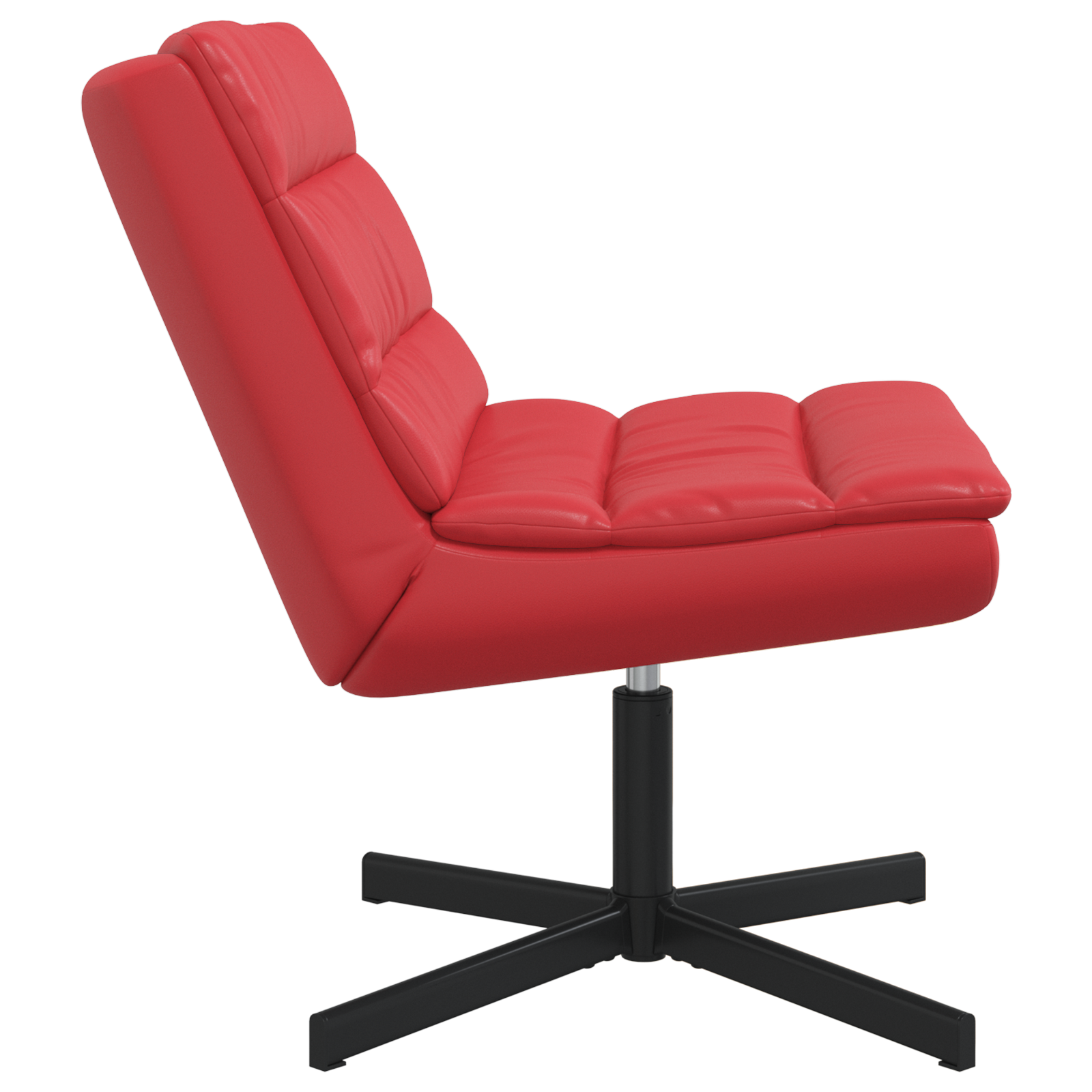 This Modern Red Swivel Chair is a perfect blend of comfort and contemporary chic, making it the ideal seat for your living room or office. Its sleek lines and bold red upholstery amp up the style in any space, effortlessly mixing function with good looks for adults wanting a cool spot to read or chill. Comfy Seating: The chair's got plush cushioning that encourages you to relax, perfect for those long reading or working sessions. The soft feel makes every moment enjoyable. Swivel Feature: The cool swivel design lets you spin 360 degrees, giving you flexibility and easy movement, so you can chat or change your position without fuss. Trendy Design: With its modern look in vibrant red, this chair boosts the decor of any room, adding a posh touch. The sleek finish suits various interiors, making it a fab addition to your home. Sturdy Material: Built from faux leather and strong steel, this chair can handle everyday use and stay looking good. The combo of materials guarantees it’ll last and is easy to clean. Compact Size: Measuring 70 cm wide, 50 cm deep, and 60 cm tall, this medium-sized swivel chair fits perfectly in both snug and bigger spaces, holding one person with a weight limit of 100 kg.