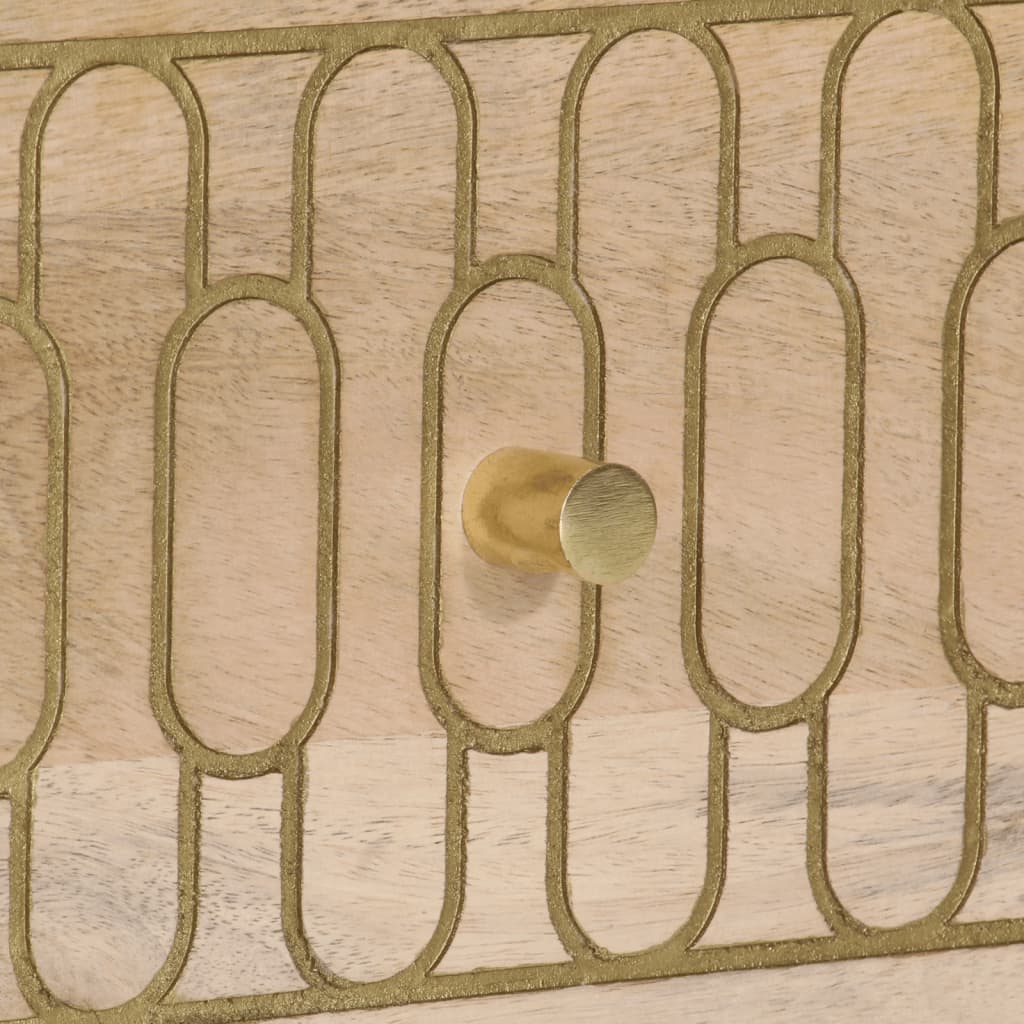 This sturdy TV cabinet is designed to be a focal point of your room with a trendy yet practical design. Solid mango wood: Solid mango wood is a strong, tropical hardwood that makes sturdy furniture. Its beautiful wood grains make every piece of furniture slightly different from the next. Made of solid mango wood, the TV stand is durable and stable.Spacious storage: The TV unit has ample storage space which makes it an ideal place for storing all your magazines, DVDs and other items.Displaying function: The sturdy top of the media unit is ideal for displaying decorative items like photo frames and plants.Wooden feet: The wooden feet give the product a natural and pleasant look while ensuring stability. It can blend well with any interior decor.Hand-carved design: This media unit with hand-carved patterns brings the luxury of elegant charm to your interior, being the focal point of your room. Good to know:Each item is unique with variations in colours and grains. The delivery is random, ensuring the exclusivity and individuality of your product.